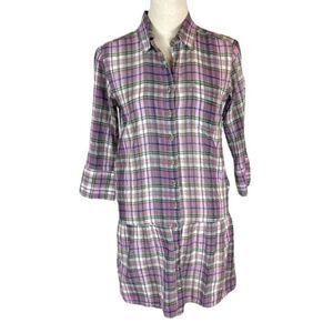 GAP purple plaid 3/4 sleeve button down shirt dress, size xs