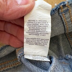 Womens size Medium, button front, chest pockets with button flap closure, frayed hemline, long sleeves with button cuffs, cropped length.