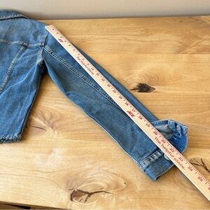 GARAGE BOYFRIEND DENIM JACKET WOMENS M CROPPED FRAY HEM CLASSIC EDGY TOMBOY CHIC