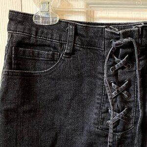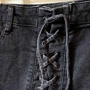 * Shoe lace style tie front, inner has a flap and button for comfort