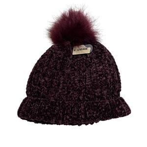 GARAGE Chenille Chunky Knit Beanie w/ Pompom Size O/S NEW Winter Cozy Colorful