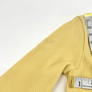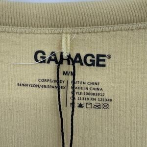 The GARAGE Long Sleeve Ribbed Plunge Neck Crop Top is a stylish women's shirt in a size medium. Made from a blend of nylon and spandex, this slim-fit blouse features a cropped style perfect for the summer, fall, and spring seasons. The top is in a vibrant yellow color, with a ribbed pattern and a plunge neckline for a trendy and feminine look. Ideal for festival, sexy, rave, coastal, and so-cal themes, this pullover top from the brand Garage is a must-have addition to any woman's wardrobe.