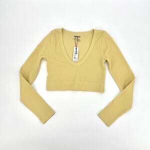GARAGE Long Sleeve Ribbed Plunge Neck Crop Top Women’s Shirt Size Medium Butter