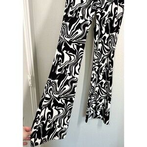 GARAGE Odessa Black White swirl Womens Flare Pants Size XS (long/tall) 70's 60's