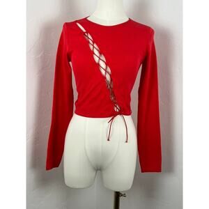 GARAGE Orange Red Ribbed Stretch Long-sleeve Top (Womens: Med)