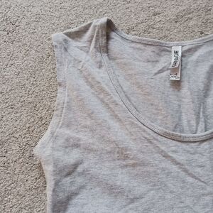 GARAGE TWO TONED BLACK AND GRAY MINI TANK DRESS, SIZE M, 95% COTTON, 5% SPANDEX, 17" PIT TO PIT, 34.5" COLLAR TO HEM