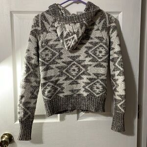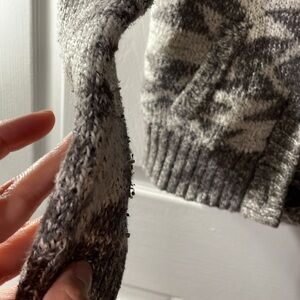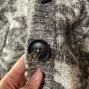 Thick knit hoodie jacket. Pretty buttons. Some slight piling from normal wear. I have LOVED this jacket, just doesn’t fit anymore.