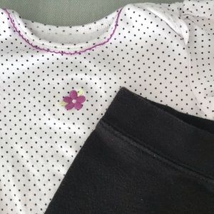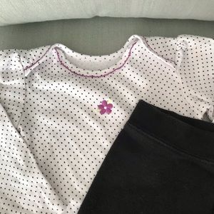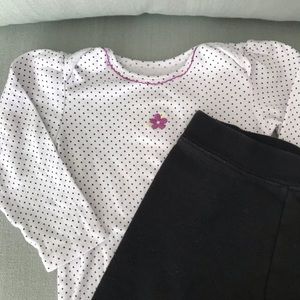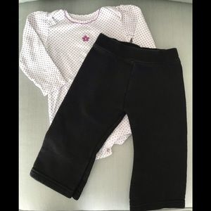 Soft black pull on pants by Garanimals with long sleeve onesie by Carters. Both 18 month and look adorable together.