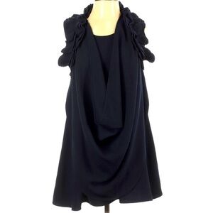 GARCIA Bloomingdales Drape front ruffle mini dress navy blue small