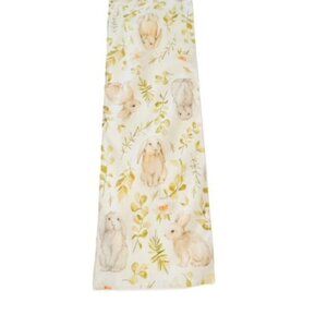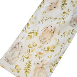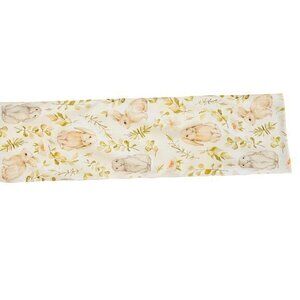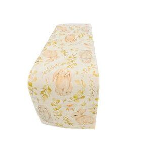 Brand new, Garden Easter Bunny Table Runner. Beige background with bunnies, flowers and leaves. Muted green and brown colors. Natural colors that look so pretty! Light canvas type of fabric, soft and flexible. Great for indoors or outdoors.