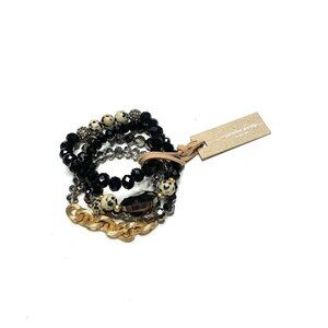 GARDEN PARTY Bracelet Set 4 Bracelets Black Glass Beads Dalmatian Print Elastic