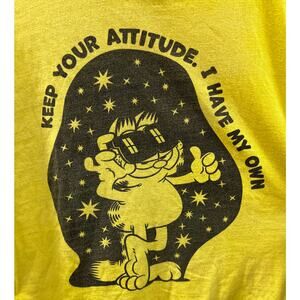 GARFIELD Y2K yellow thrashed grunge tee “Keep Your Attitude I Have My Own” sz XL