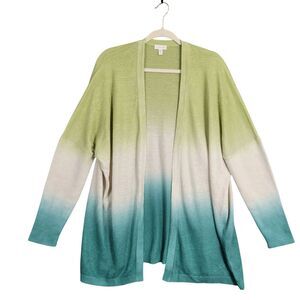 GARNET HILL 50528 Green Ombre Tidal Linen Cardigan Coastal Lagenlook SIZE MEDIUM