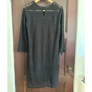 GARNET HILL | Black Lace Long Sleeve Sheath Dress Swing Trapeze Dress| Size 6