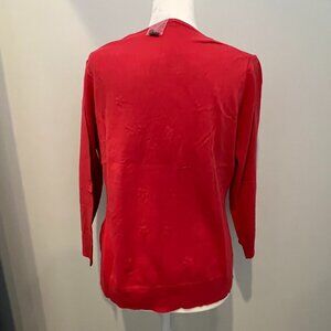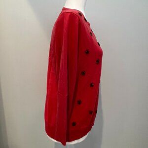 A fun cardigan in comfy cotton, this feminine crewneck sweater is beautifully detailed with brown wooden beads on the front.