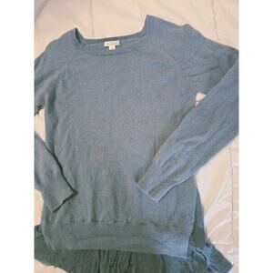 GARNET HILL Cashmere SWEATER GRAY/Blue Ruffle Hem Sz M UltraSoft Fairy Cottage