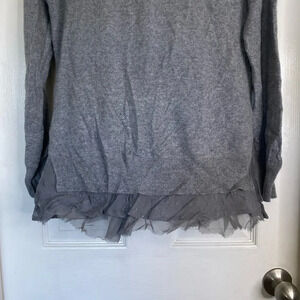 GARNET HILL Cashmere Sweater Gray Ruffle Hem Size Medium Basic
