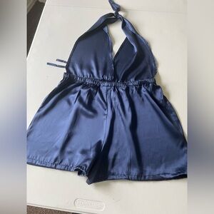 Romper for disco party, garden cruise beach pool is ideal to look spectacular this summer on that special occasion Navy blue romper with open back 100% SILK M