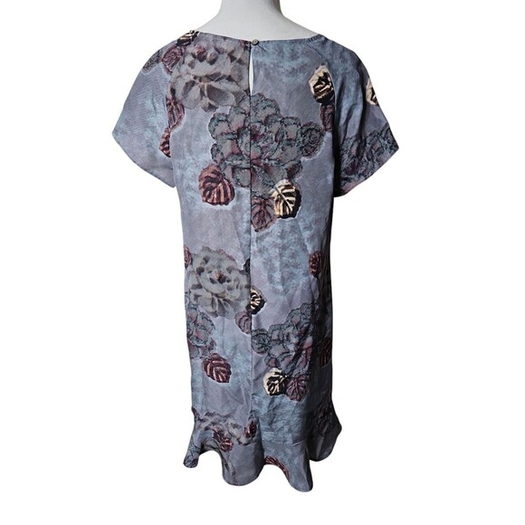 GARNET HILL Olivia Silk Dress Textured Floral Short Sleeved Ruffle Hem Size 10