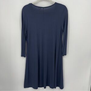 GARNET HILL Seamed Knit Trapeze Dress in navy Blue Soft Size M 3/4 sleeve