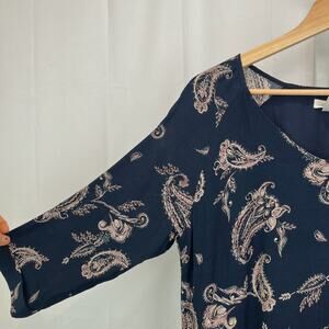 GARNET HILL Size 12 Paisley Bohemian Pocket Detail Dress Navy Blue