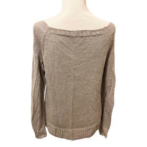 GARNET HILL Sweater •S• Linen Blend Pullover Taupe Loose Fit Open Boat Neck