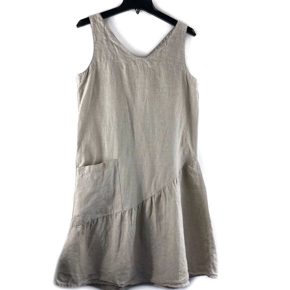 Beautiful loose fit asymmetrical oatmeal colored midi dress.