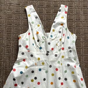 GARNETT HILL Women's Sleeveless White Polka Dots Dress 100% Cotton Sz 8P Retro.