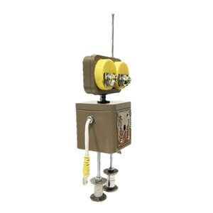 Most of my found object robot parts are found in flea markets, thrift stores, and auctions.