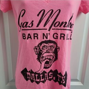 Womens fitted neon pink graphic tee from Gas Monkey Bar n Grill in Dallas, Texas