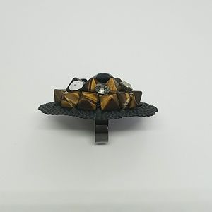 Flat black studded metal fancy ring setting faux brown tigerseye studs assorted #swarovski rhinestones jet - jet hematite - silver -black diamond - Crystal metallic light gold one of a kind gun metal adjustable ring shank