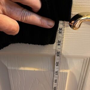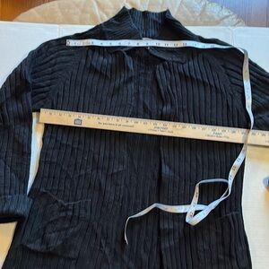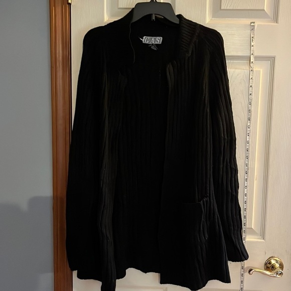 GAS-size L-black long open cardigan sweater has 2 belt loops. 100% acrylic. Has some pilings. See photos for approximate measurements.