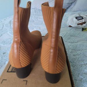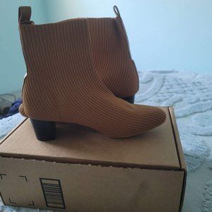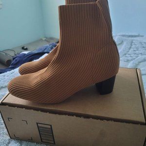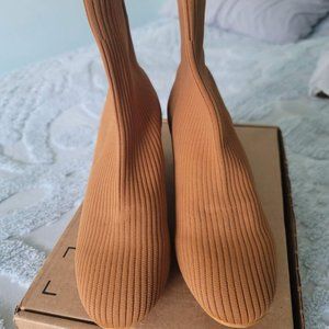 GATUXUS Women's Glove Chunky Mid Heel Ankle Boots Pointed Toe Knit Sock Style