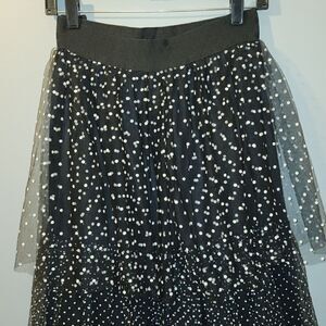 Black and white polka dot gaucho mesh with full lining 3 tier.