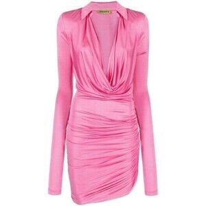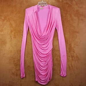 GAUGE 81 Womens Dress XS Hot Pink Pullover Mini Draped Stretch Plunging UTENA