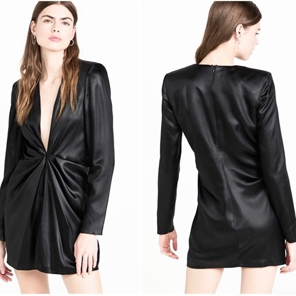 GAUGE81 Zarate black satin long sleeves cocktail evening mini dress Size Small