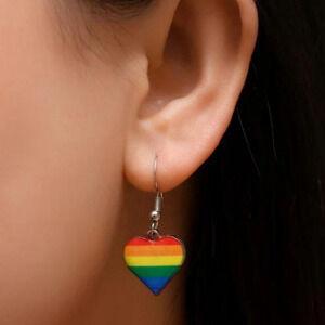 GAY PRIDE EARRINGS LBGTQ RAINBOW EARRINGS HEART SHAPED EARRINGS DANGLE LESBIAN