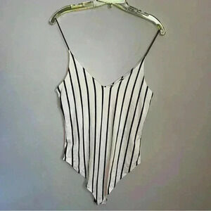 GAZE Bodysuit, Vertical Blk Stripes, Size M, EUC
