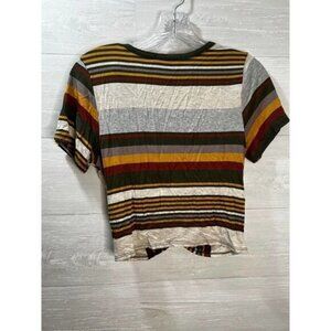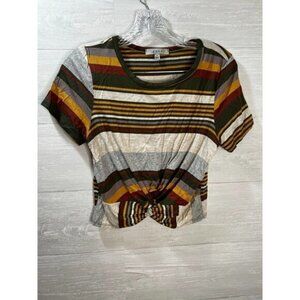 GAZE Women's Front Twist Short Sleeve Stripe Crop T-Shirt Tops Blouse