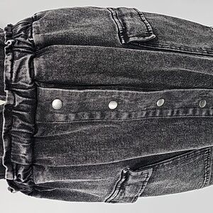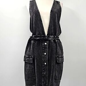 GB Acid Wash Black Denim Jumper w Deep V Front & Back & Cargo Pockets