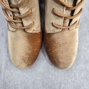 GB Block Heel Lace Up Boots Velvet Gold Special Occasion Party Ankle Bootie Sz 9
