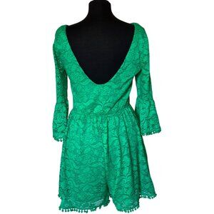 GB Brand Green Lace Romper Shorts High-Rise Polyester Blend Junior's Size L-READ