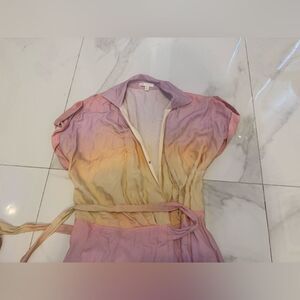This elegant ombre wrap dress features a beautiful blend of pink and cream hues. Perfect for any occasion, it offers a flattering fit with its wrap design. Add a touch of sophistication to your wardrobe with this stylish piece.