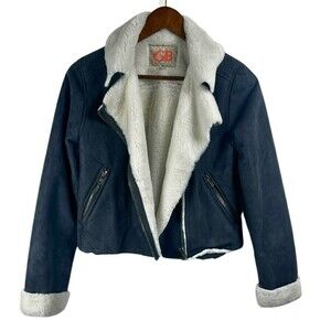 GB Faux Suede Size XS Vegan Fur Full Zip Asymmetrical Grey Moto Peter Pan Jacket