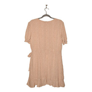 GB GIANNA BINI NEW $59 Flower Petal Printed Faux Wrap Ruffle Hem Dress Tan Large