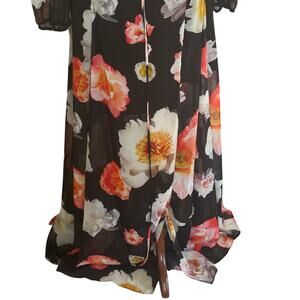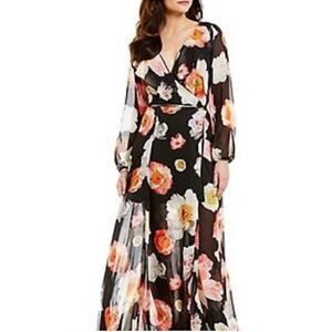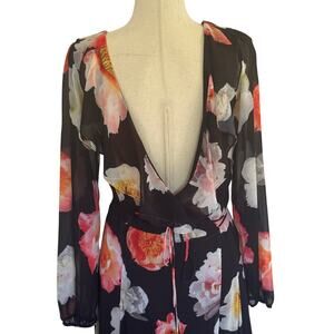 GB GIANNI BINI FLORAL PLUNGE CRISS CROSS MAXI DRESS IN BLACK PRE-OWNED MEDIUM