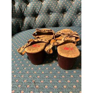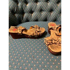 GB GIRLS LEOPARD ANIMAL PRINT OPEN TOE SANDLE WOODEN CORK HEELS SIZE 3