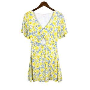 GB Gianni Bini Bright Yellow Floral Keyhole Cut Out Mini Fit & Flare Dress