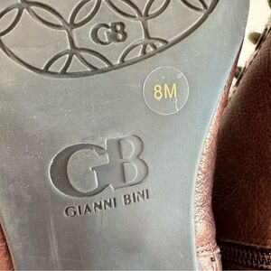 GB Gianni Bini Brown Leather Ankle Buckle Lace Up Booties Faux Shearling Lined