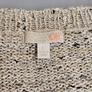 GB Gianni Bini Cropped Tan/Cream/Black With Gold Sequins V-Neck Sweater Size L